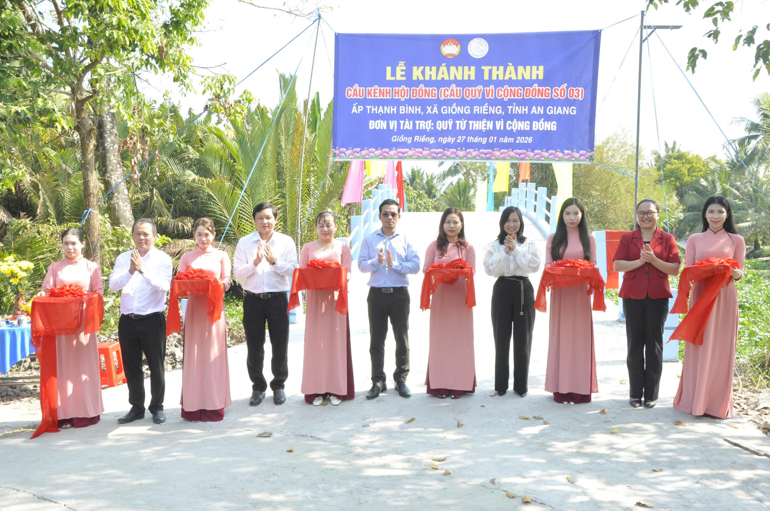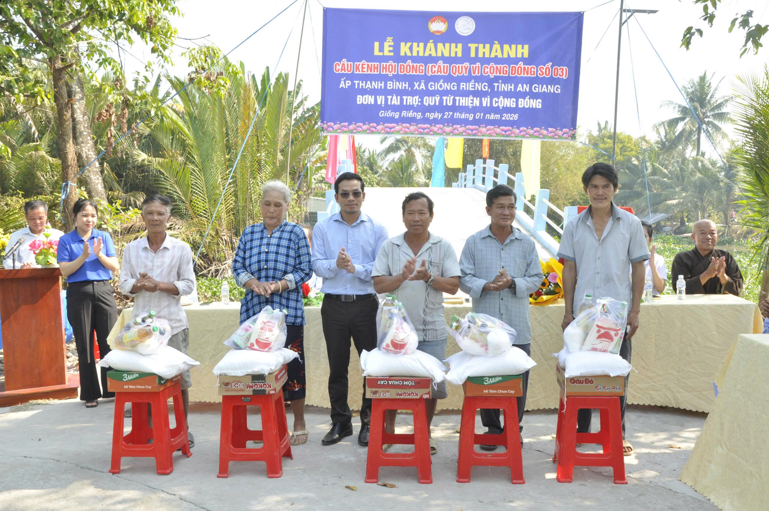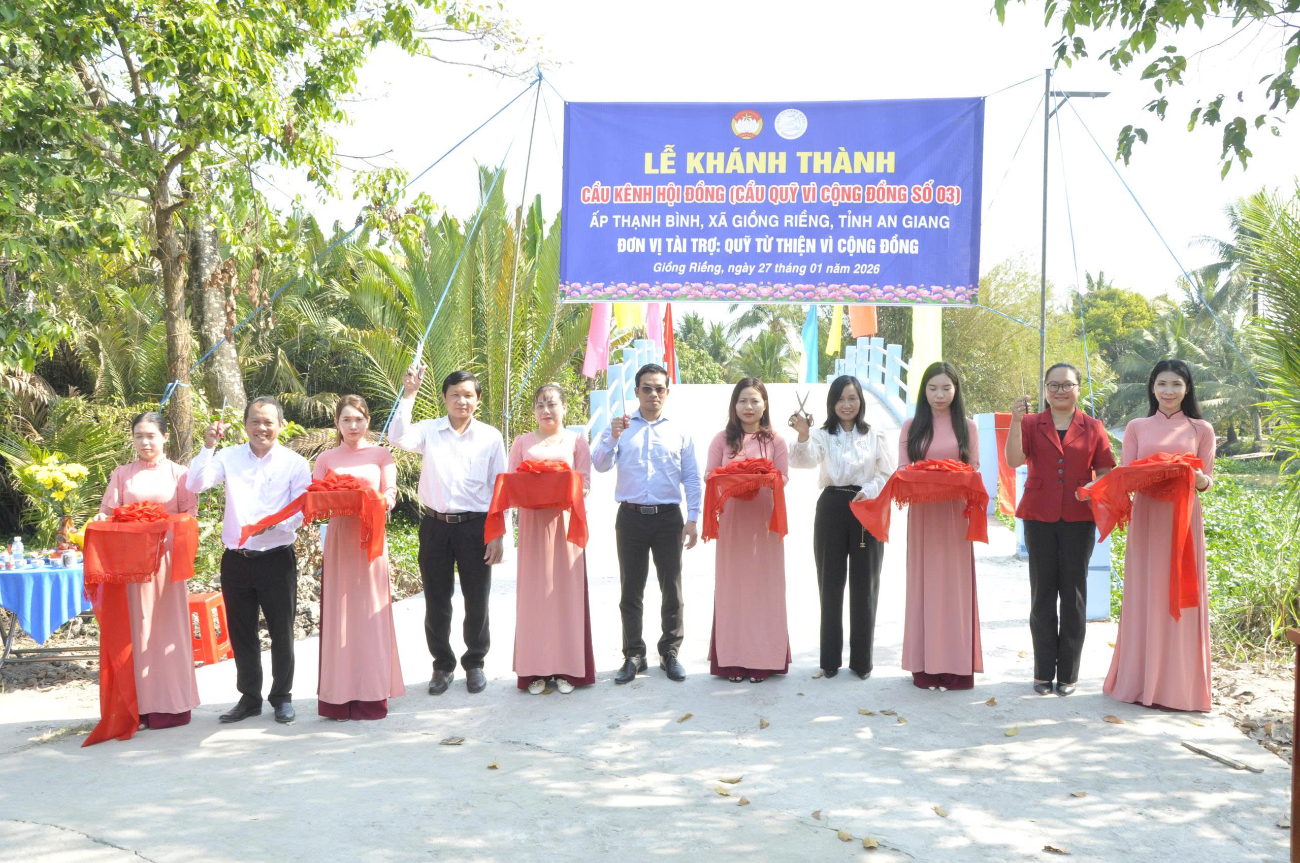 Sáng ngày 27/01/2026, Quỹ Từ thiện Vì Cộng Đồng phối hợp với UBND xã Giồng Riềng tổ chức Lễ khánh thành cầu Hội Đồng tại ấp Thạnh Bình, xã Giồng Riềng, tỉnh An Giang.