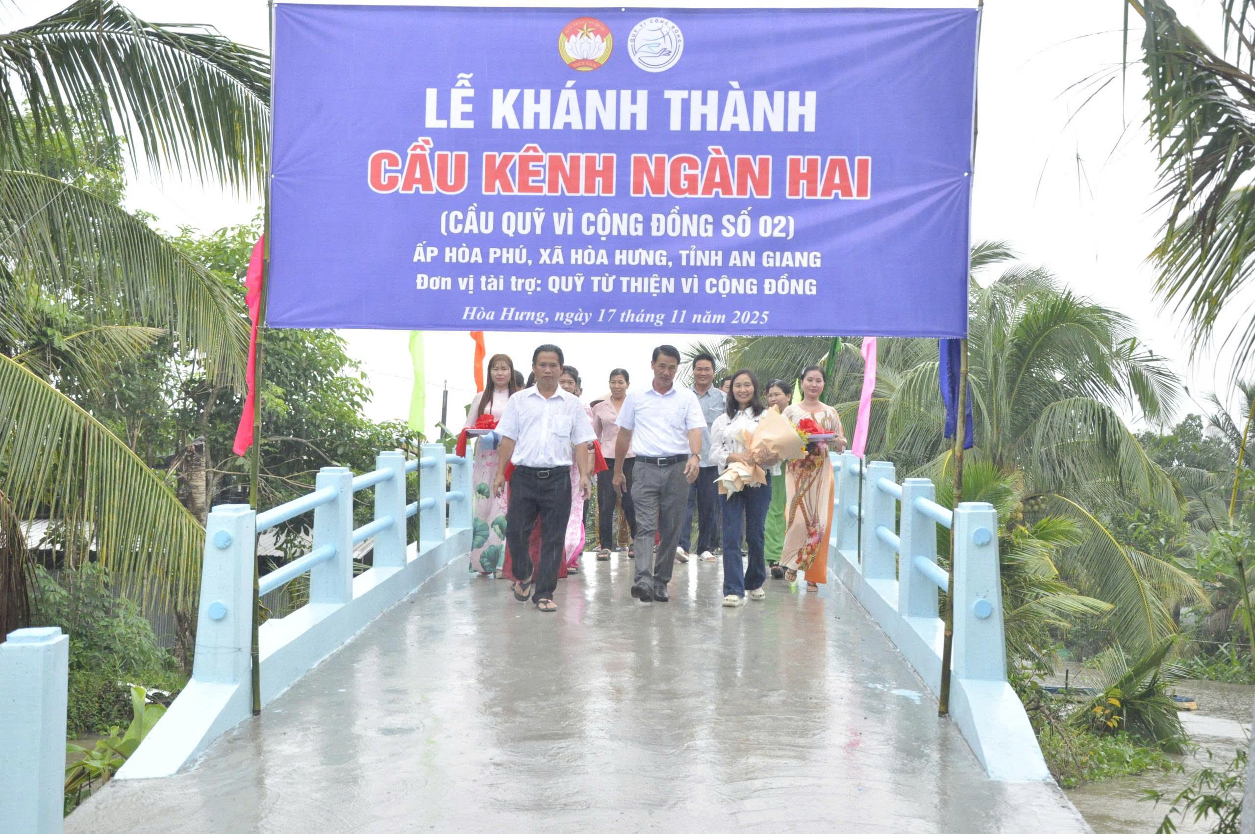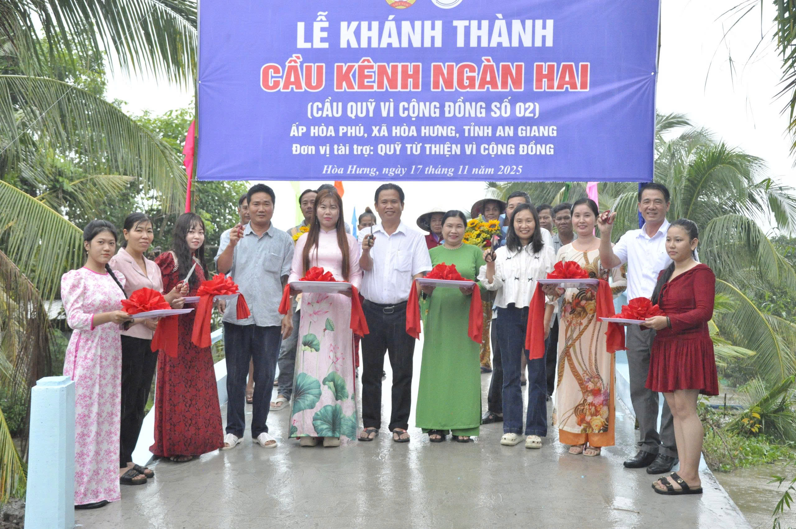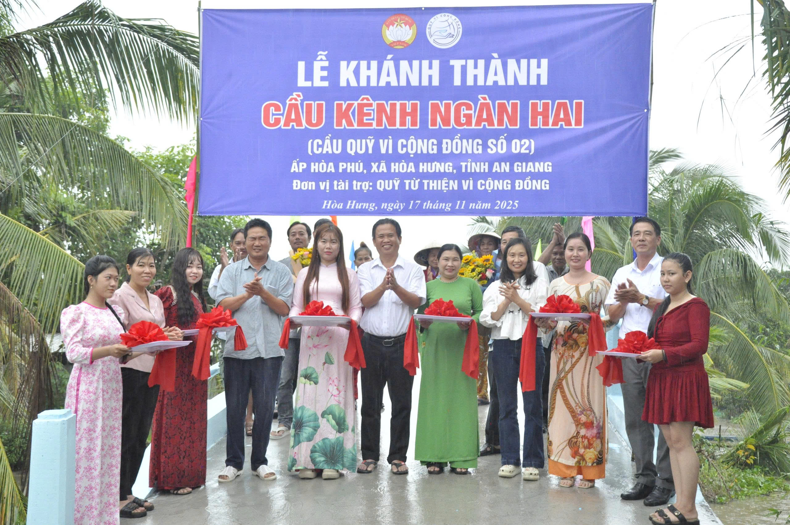 Chiều ngày 17/11/2025, Quỹ từ thiện Vì Cộng Đồng phối hợp với UBND xã Hòa Hưng tổ chức Lễ khánh thành cầu Ngàn Hai, tuyến kênh Tám Phó, ấp Hòa Phú, xã Hòa Hưng, tỉnh An Giang.